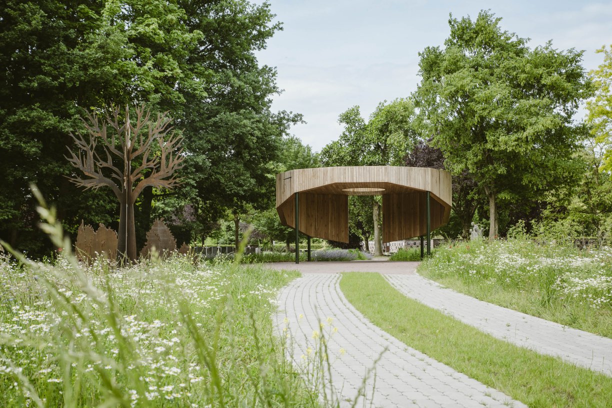 Ons team heeft met trots bijgedragen aan de bouw van een cirkelvormige ontmoetingsplaats op de 𝗻𝗮𝘁𝘂𝘂𝗿𝗯𝗲𝗴𝗿𝗮𝗮𝗳𝗽𝗹𝗮𝗮𝘁𝘀 𝗶𝗻 𝗢𝘂𝗱-𝗧𝘂𝗿𝗻𝗵𝗼𝘂𝘁.